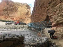 Pour traverser, il y a un petit pont piéton en métal (au bord de la rupture!) que les gens empruntent pour passer d’une rive à l’autre, d’une Jeep à l’autre.